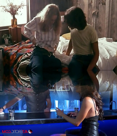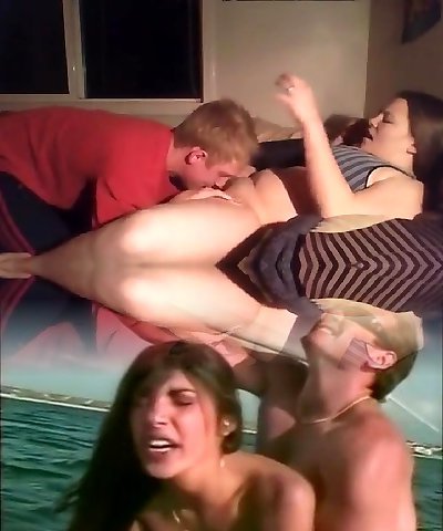 Group Sex for a hot brunette thirsty for sex and super-hot cum in a