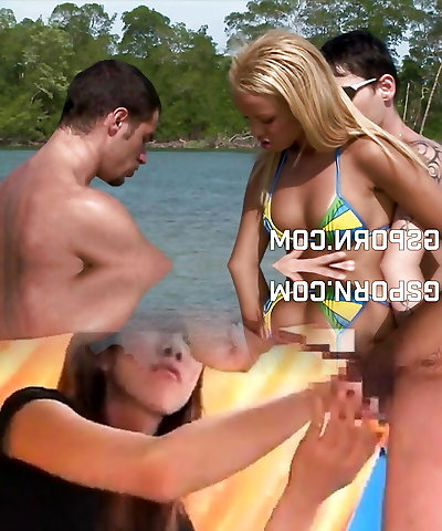 Hot brazilian blond teenager 20yo fucked in hard anal threesome on beach