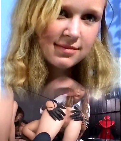 blond schoenheit schiebt sich riesen dildo in die muschi