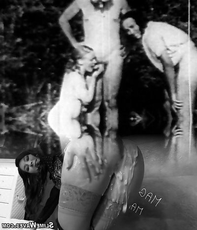 Retro dame between two hard peckers