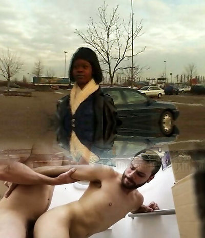 White super-bitch wife Rebeca gives eager blowjob to a couple of big black dudes