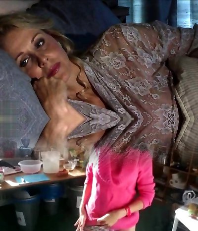 Horn-mad blondie in sumptuous ligerie gets her pussy poked