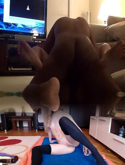 Marvelous student wears her mothers leather footwear home alone