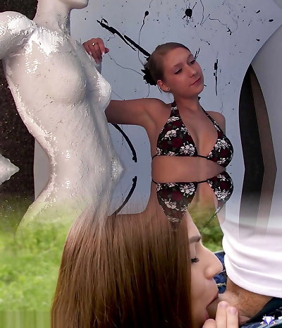 Outstanding German teen gets her small boobs covered with jism
