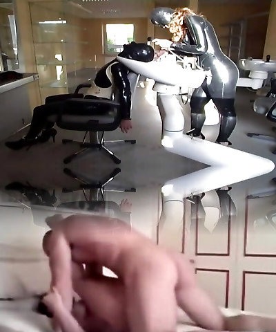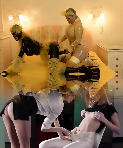Two kinky chicks in latex garment lick each other snatches in 69 style