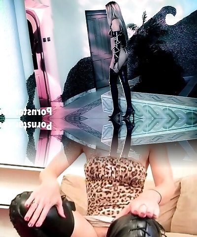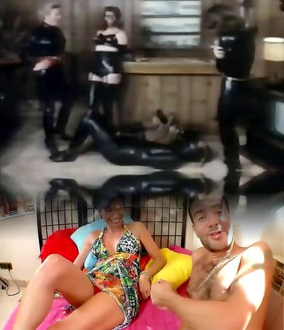 Sex appeal mistress in latex outfit makes her man gobble her hairy twat
