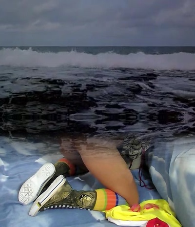 Hot brazilian blond teenager 20yo fucked in hard anal threesome on beach